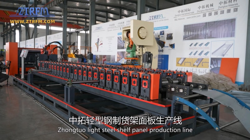 中拓輕型鋼制貨架面板生產(chǎn)線,采用的是一種多復(fù)合、多折疊、多沖孔的形式,形成一種非常好的承重性,一種多層的閉合性貨架托盤。